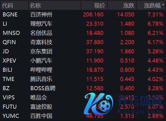与好意思股合座发挥不同的是,中概股集体走高,纳斯达克中国金龙指数盘中一度大涨3.29%,收盘涨2.82%。热点中概股中,京东集团涨5.26%,理思汽车涨6.78%,百济神州涨7.31%;其他还有腾讯音乐、小鹏汽车、哔哩哔哩、唯品会等涨3%以上。