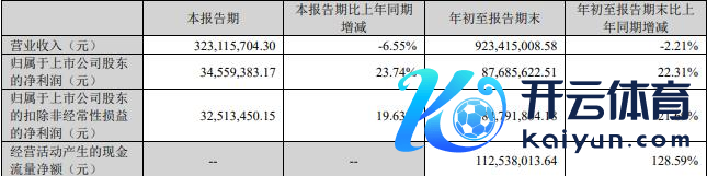 岁首至论述期末,公司杀青生意收入9.23亿元,同比减少2.21%;包摄于上市公司激动的净利润8768.56万元,同比增长22.31%;包摄于上市公司激动的扣除非时常性损益的净利润8479.19万元,同比增长增长21.69%;筹办活动产生的现款流量净额为1.13亿元,同比增长128.59%。