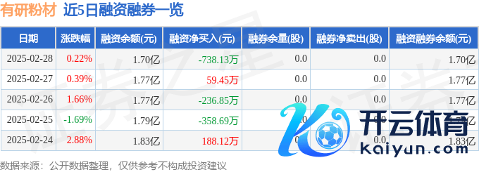 有研粉材融资融券信息清晰,融资方面,当日融资买入3379.17万元,融资偿还4117.3万元,融资净偿还738.13万元。融券方面,融券卖出0.0股,融券偿还0.0股,融券余量0.0股,融券余额0.0万元。融资融券余额1.7亿元。