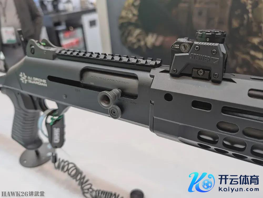 贝雷塔防务工夫公司展示了“A.I无东说念主机卫士(A.I Drone Guardian)”装备。实质上,这是一支贝奈利(Benelli,BDT旗下企业)M4霰弹枪,配备视得乐(Steiner,BDT旗下企业)MPS红点对准镜。A.I无东说念主机看守者装备将于2025年春季发布,集结了贝奈利M4霰弹枪、红点对准镜和4号钨合金霰弹。